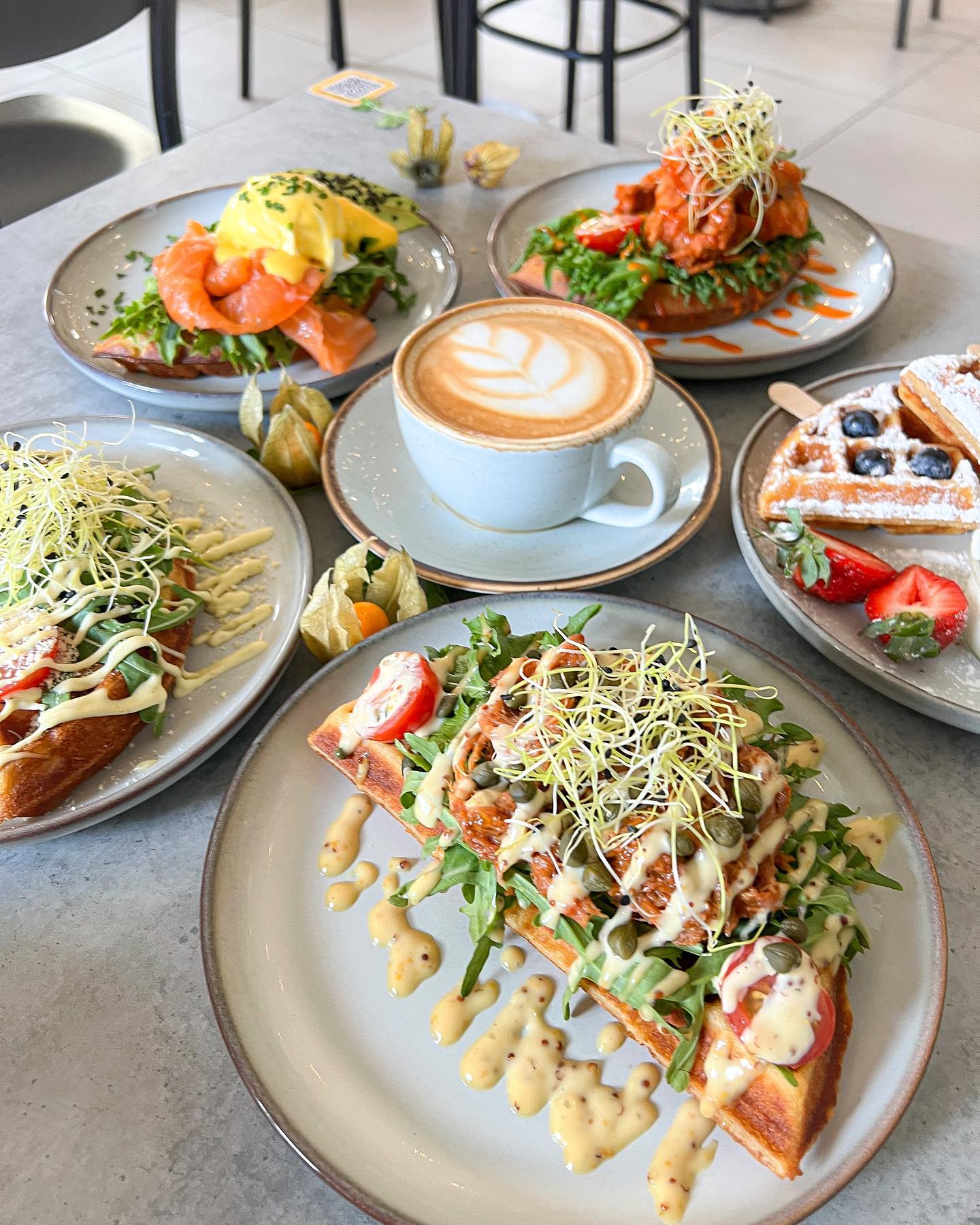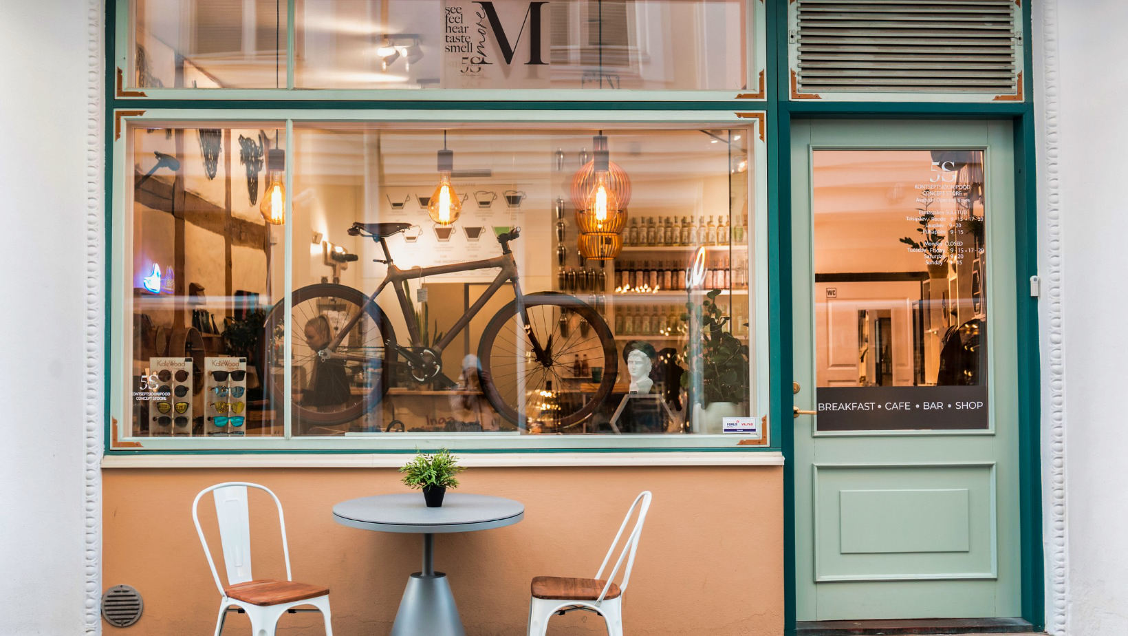 Palan painikkeeksi voi valita erikoiskahveja, teetä tai trendikkäitä kuumia juomia. Kahvilassa voi myös nauttia lasillisen viiniä tai vaikkapa raikkaan oluen. Kahvit ja leivonnaiset voi nauttia paikan päällä tai ottaa mukaan.