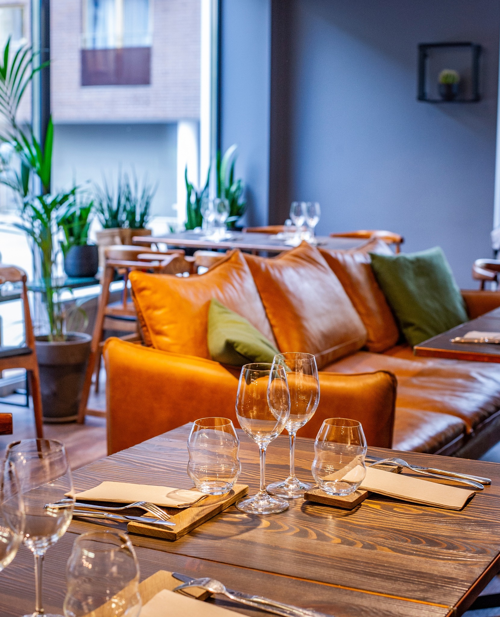 Mantel & Korstenin ovesta sisään astuessa kiinnittää ensimmäisenä huomion näyttäviin kukkatapetteihin ja ruutuikkunoihin. Syksyinen valo tulvii sisään ja lounasajan viimeisimpien hetkien miltei tyhjä ravintola näyttää silti kutsuvalta ja lämpimältä. Menu koostuu klassisista mauista, joita ravintola on muokannut oman näköisiksi annoksiksi.